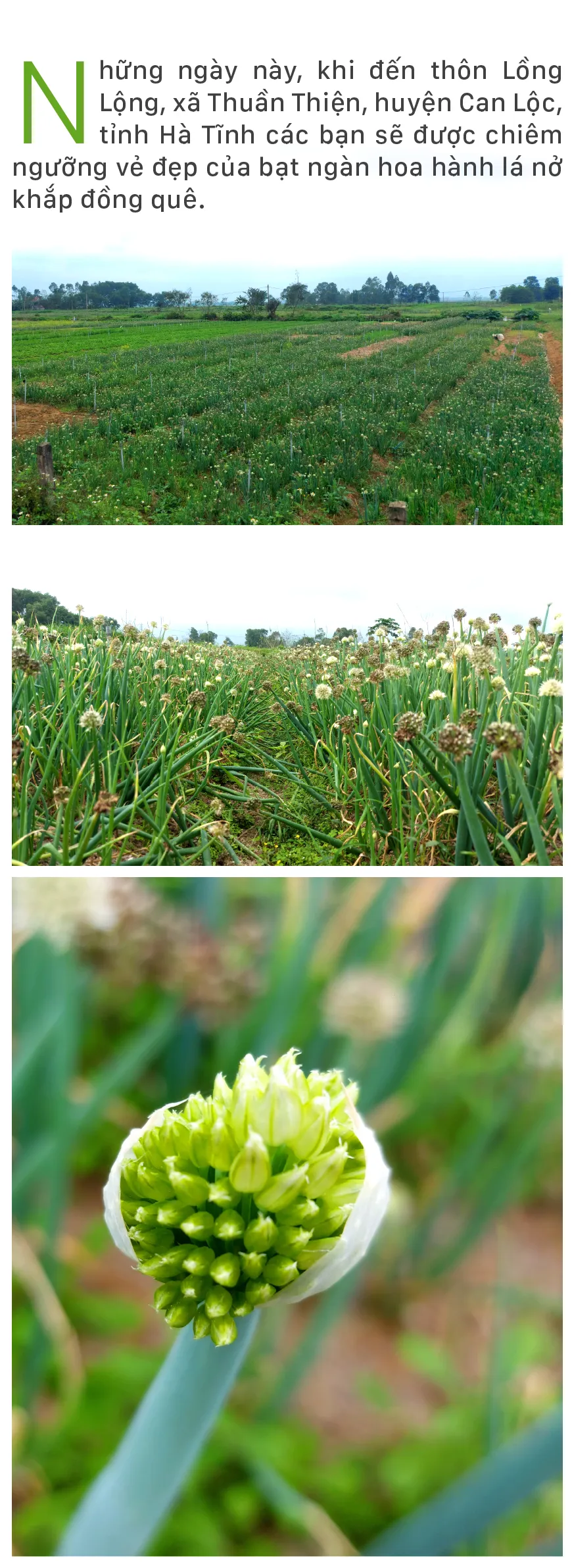 (ĐTTCO) - Những ngày này, khi đến thôn Lồng Lộng, xã Thuần Thiện, huyện Can Lộc, tỉnh Hà Tĩnh các bạn sẽ được chiêm ngưỡng vẻ đẹp của bạt ngàn hoa hành lá nở khắp đồng quê.