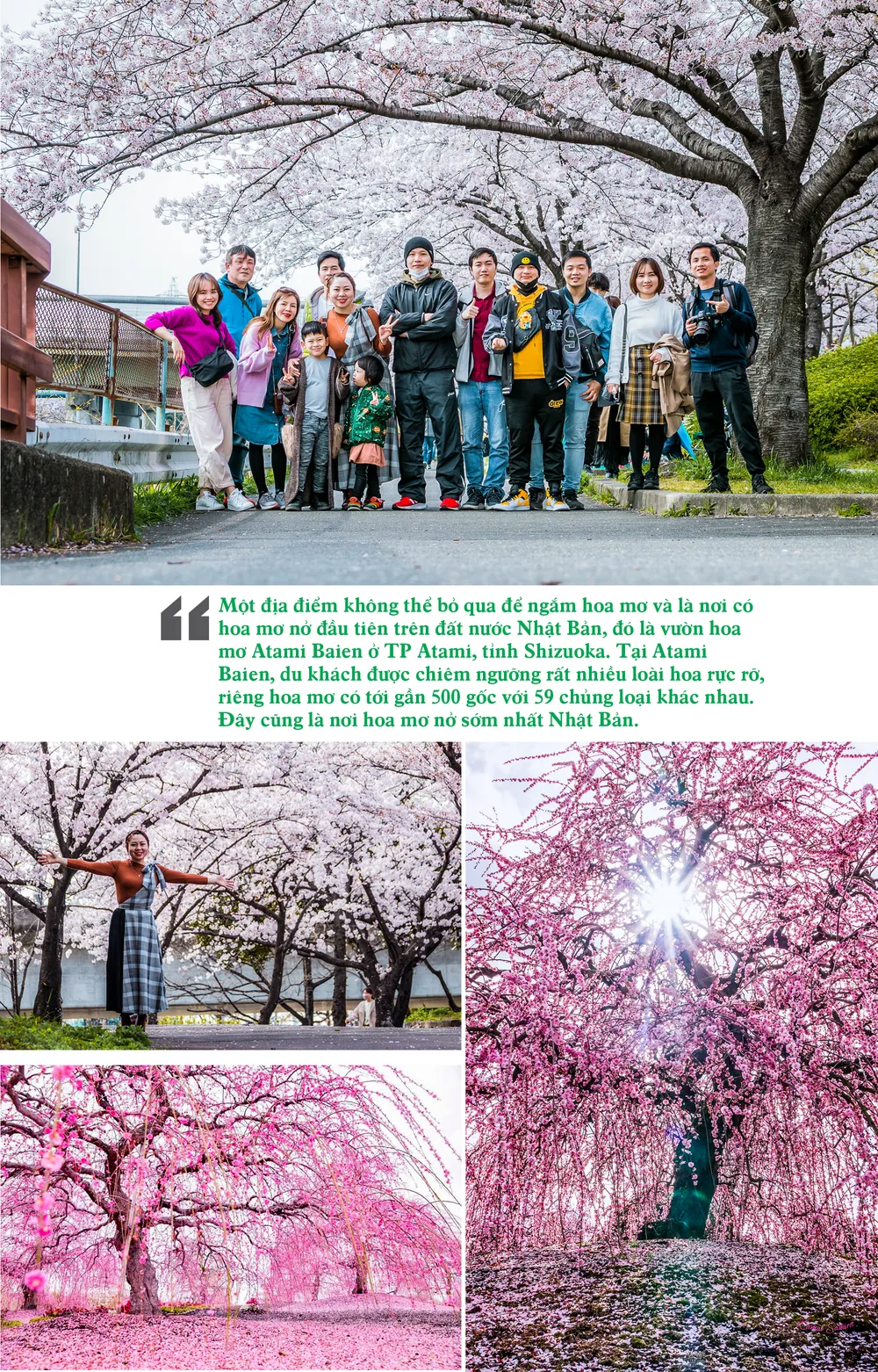 Một địa điểm không thể bỏ qua để ngắm hoa mơ và là nơi có hoa mơ nở đầu tiên trên đất nước Nhật Bản, đó là vườn hoa mơ Atami Baien ở TP Atami, tỉnh Shizuoka. Tại Atami Baien, du khách được chiêm ngưỡng rất nhiều loài hoa rực rỡ, riêng hoa mơ có tới gần 500 gốc với 59 chủng loại khác nhau. Đây cũng là nơi hoa mơ nở sớm nhất Nhật Bản.