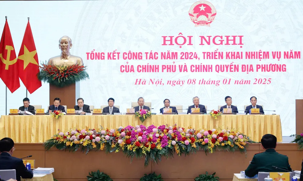 Hội nghị Tổng kết công tác năm 2024 và triển khai nhiệm vụ năm 2025 của Chính phủ và chính quyền địa phương, sáng 8-1. Ảnh: VIẾT CHUNG