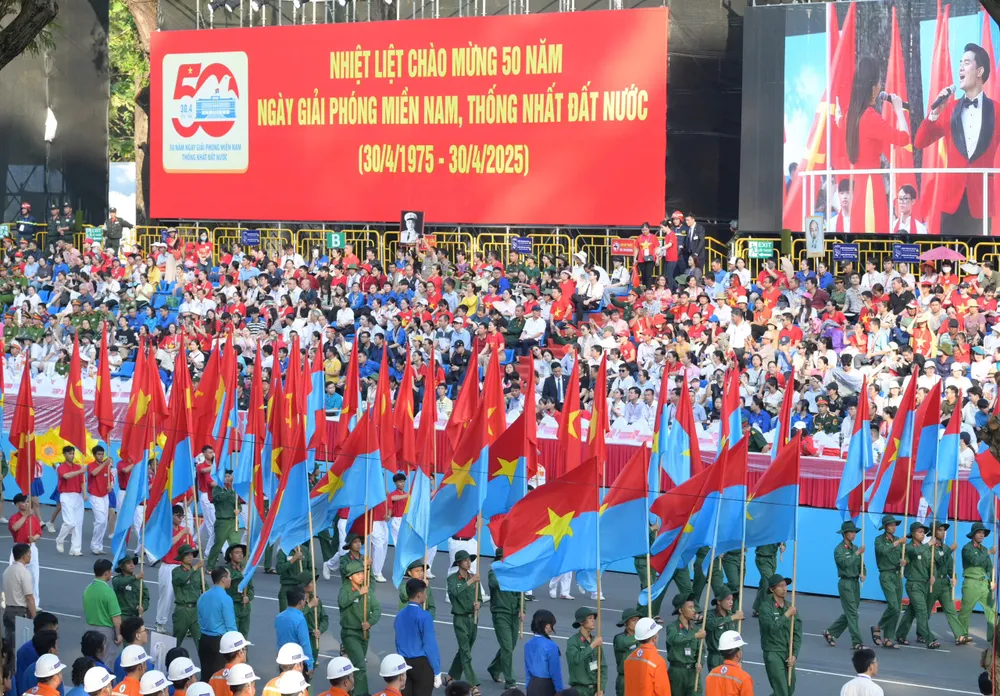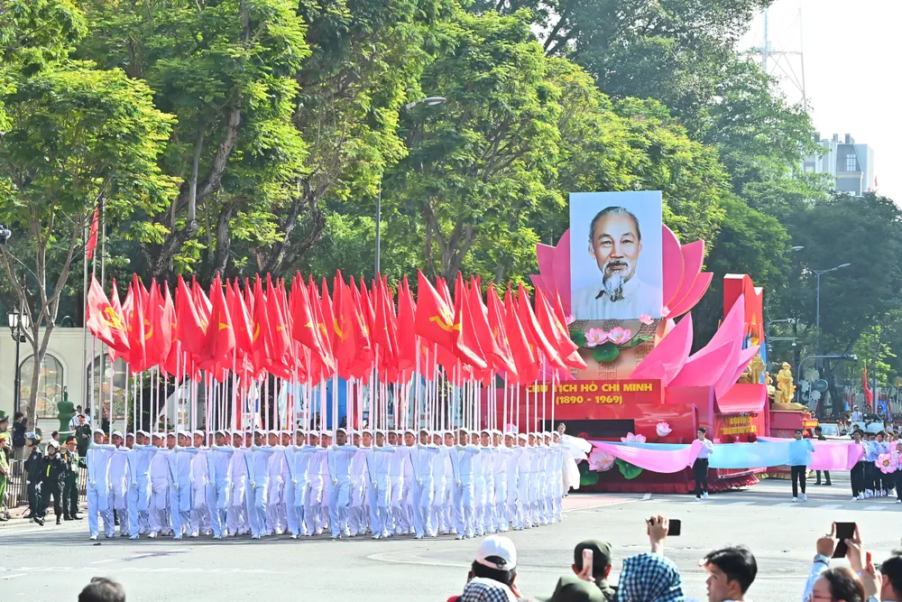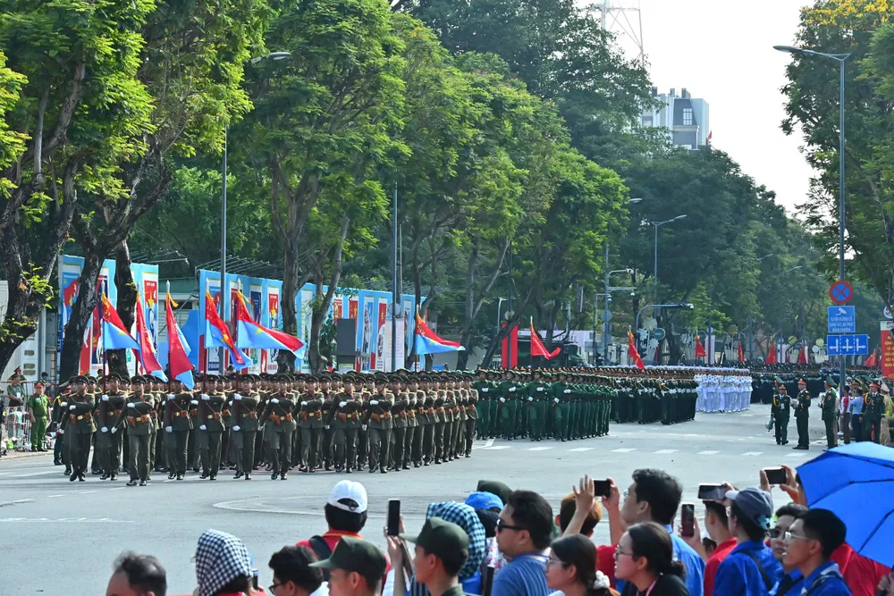 Phần diễu hành do TPHCM đảm nhiệm, với 12 khối đại diện cho các tầng lớp nhân dân, gồm: khối tôn vinh các Anh hùng Lực lượng vũ trang nhân dân và các nhân chứng lịch sử tiêu biểu, Mặt trận Tổ quốc Việt Nam, cựu chiến binh, cựu thanh niên xung phong giải phóng, công nhân, nông dân, trí thức, doanh nhân, đồng bào Việt Nam ở nước ngoài, phụ nữ, thiếu nhi và thanh niên, và cuối cùng là khối văn hóa, thể thao.