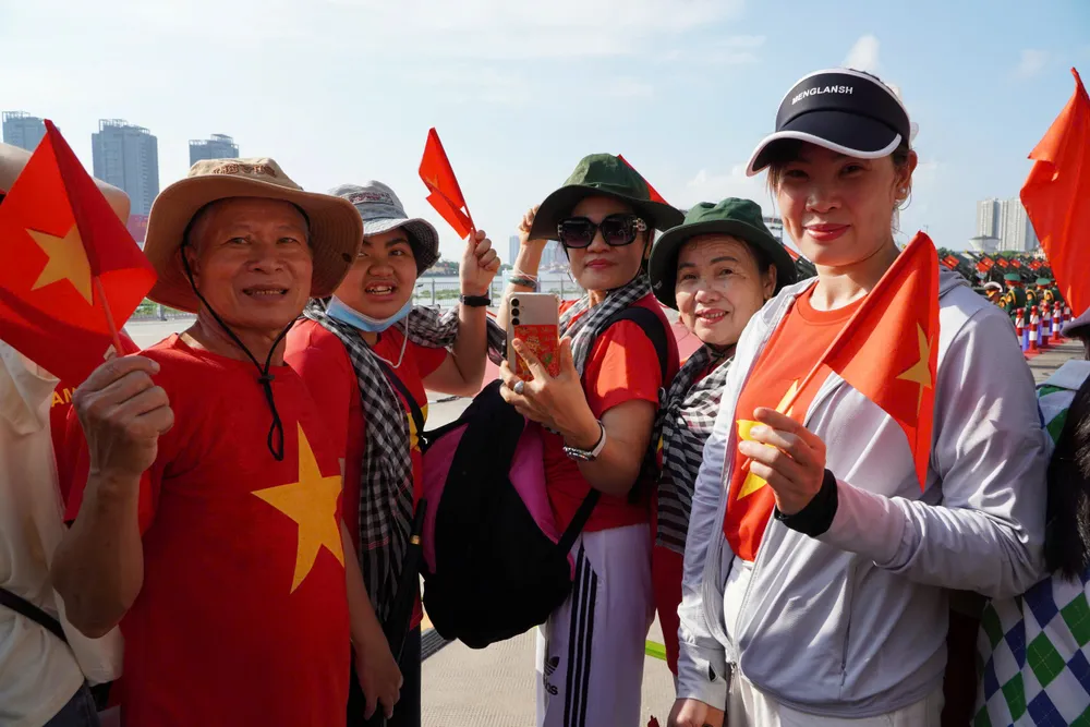 Đến từ Bình Dương, chị Lê Phạm Mỹ Linh cũng chia sẻ: "Nhìn lá cờ Đảng, cờ Tổ Quốc tung bay trên bầu trời, cùng với tiếng hò reo không ngớt của người dân khiến lòng mình cảm thấy vô cùng xúc động. Một minh chứng hùng hồn cho lòng yêu nước của dân tộc Việt Nam - Dân tộc anh hùng".