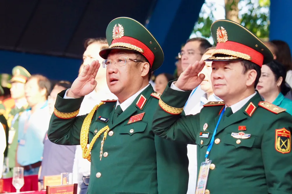 Các lãnh đạo dự buổi tổng duyệt. Ảnh: HOÀNG HÙNG