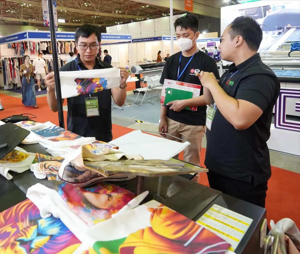 Giới thiệu công nghệ in kỹ thuật số ứng dụng trong sản xuất vải tại Triển lãm thiết bị ngành may mặc vừa được tổ chức ở TPHCM. Ảnh: Hoàng Hùng