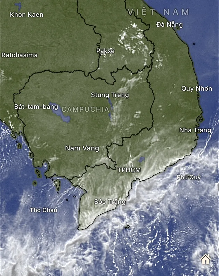 Miền Nam sắp đón những cơn mưa đầu mùa, nắng nóng sẽ giảm dần cường độ. Ảnh vệ tinh lúc 7 giờ sáng 30-4
