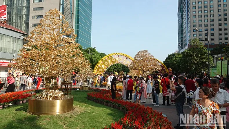 Đường hoa Nguyễn Huệ luôn thu hút đông đảo du khách đến tham quan trong suốt kỳ nghỉ lễ Tết Nguyên đán Giáp Thìn.