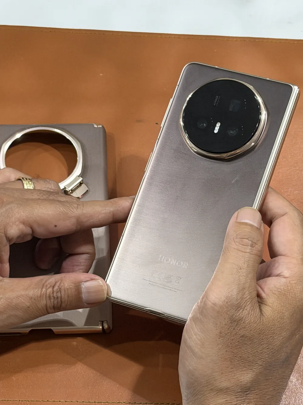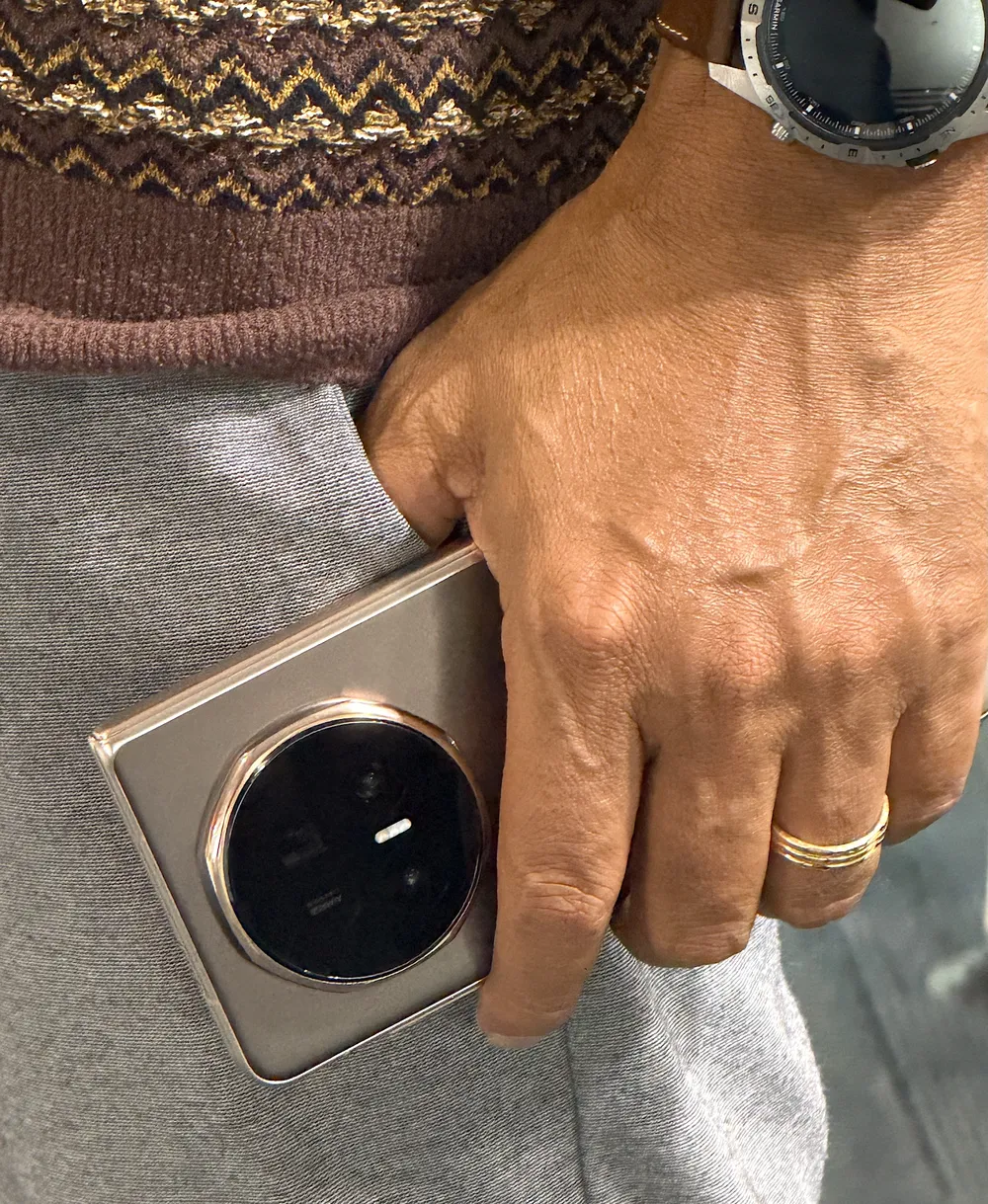 Cảm giác đầu tiên khi cầm Magic V5 là sự ngỡ ngàng. Với trọng lượng chỉ 217g và độ dày 8.8mm khi gập, chiếc máy này nhẹ hơn cả iPhone 17 Pro Max (231g). Đây không phải con số trên giấy mà là trải nghiệm thực tế là tôi có thể bỏ nó vào túi quần, sử dụng một tay, và hoàn toàn quên đi rằng mình đang mang theo một thiết bị hai màn hình.