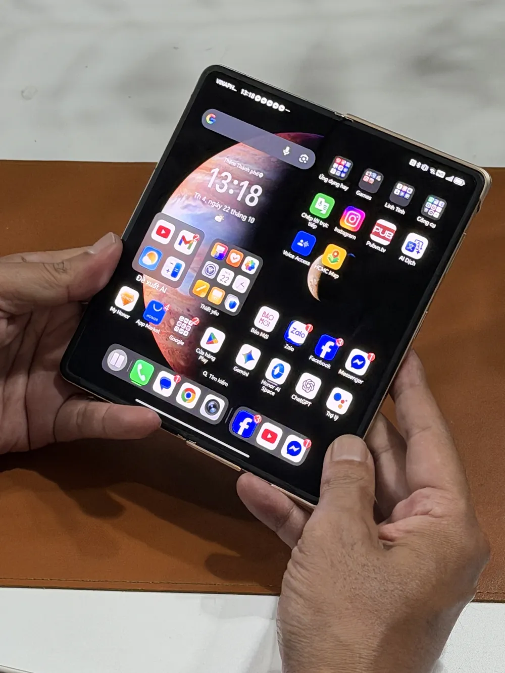 Khi mở ra, độ mỏng 4.1mm biến Magic V5 thành một tấm bảng điện tử siêu mỏng trên tay. Màn hình 7.95 inch bật lên, và tôi có ngay một không gian làm việc rộng rãi... từ một chiếc điện thoại dạng thanh bỏ túi. Đó chính là “ma thuật” mà tôi luôn mong đợi ở điện thoại gập.