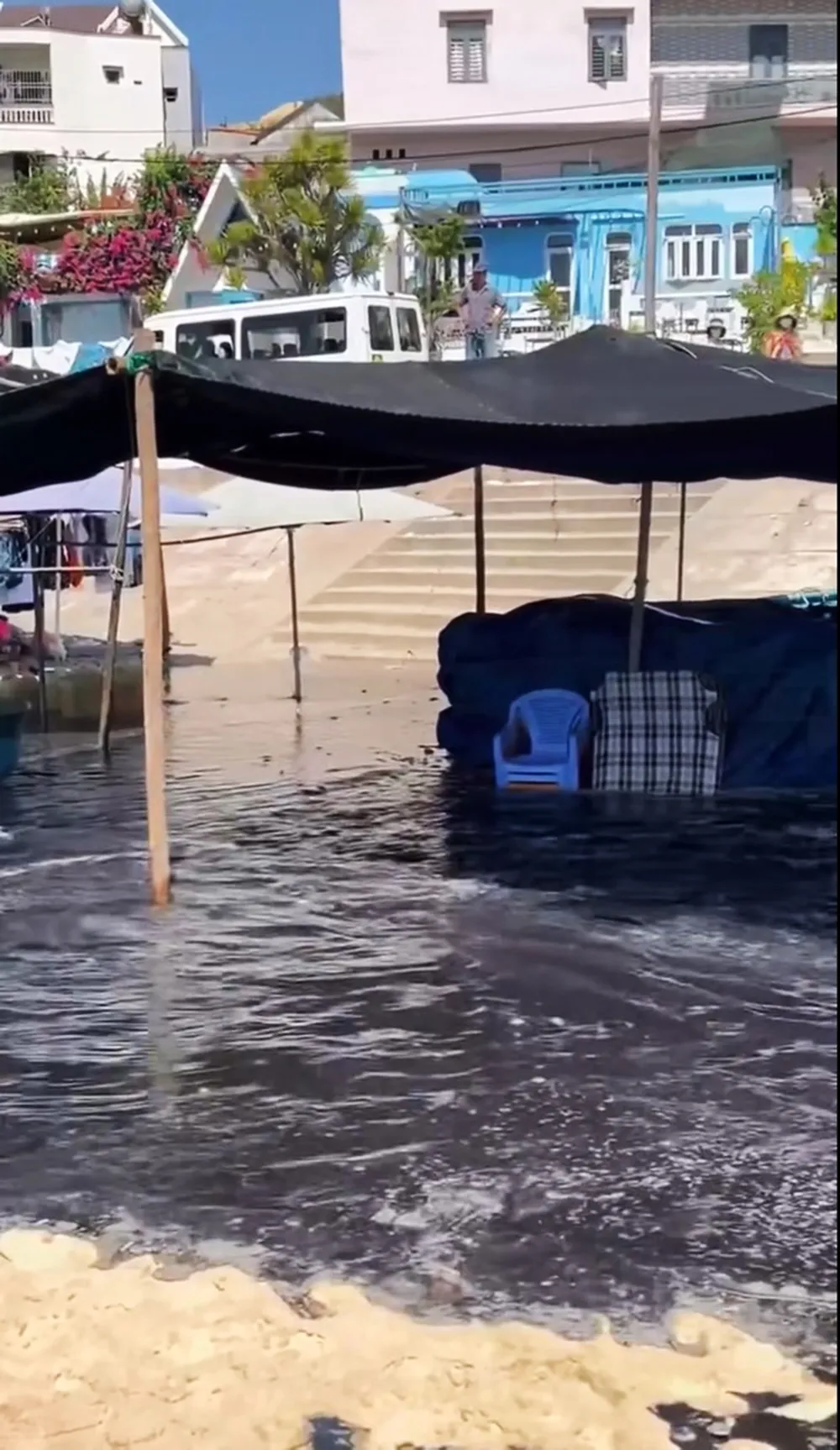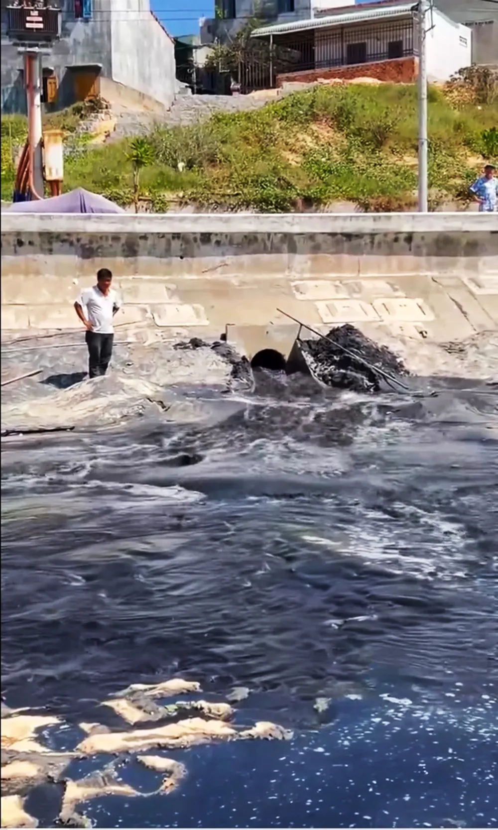 Hiện trường dòng nước thải đen ngòm chảy thẳng ra bãi biển