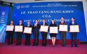 (ĐTTC) - Taị lễ kỷ niệm 15 năm hoạt động của HOSE được tổ chức ngày 25-7 vừa qua, CTCK TP.HCM-HSC (Mã HOSE – HCM) vinh dự đón nhận bằng khen của Thủ tướng Chính phủ vì những thành tích nổi bật đóng góp vào sự phát triển chung của TTCK Việt Nam giai đoạn 2010-2014.