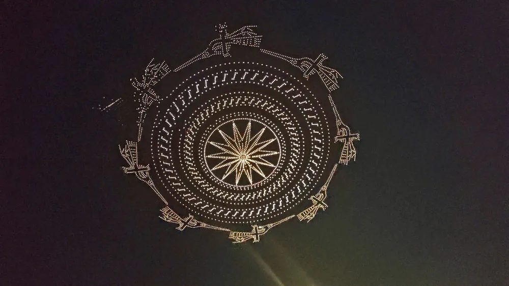 Đây là màn trình diễn kết hợp hoàn hảo giữa công nghệ hiện đại và nghệ thuật sân khấu mang đến trải nghiệm độc đáo. Theo như các lần tập duyệt trước, 10.500 drone vẽ lên những hình ảnh sống động tái hiện các khoảnh khắc lịch sử quan trọng.