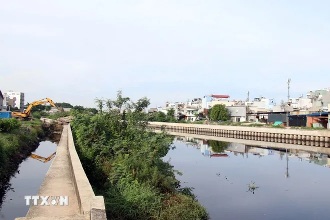Dự án cơ bản thi công xong phần kè hai bên bờ kênh. (Ảnh: Tiến Lực/TTXVN)