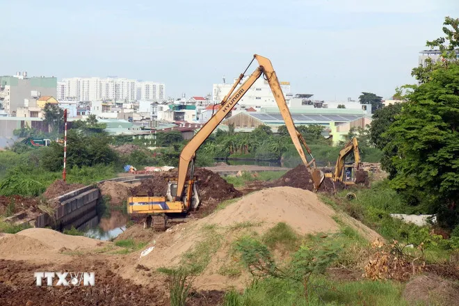 Công trường thi công dự án tại khu vực cầu Chợ Cầu, giáp ranh giữa quận 12 và Gò Vấp. (Ảnh: Tiến Lực/TTXVN)