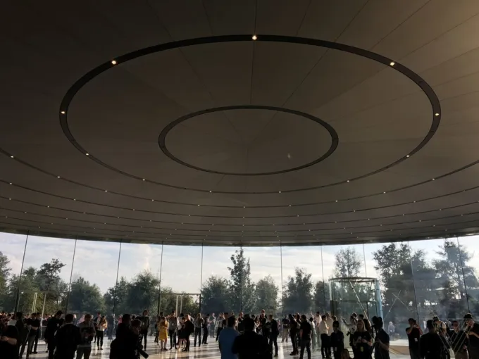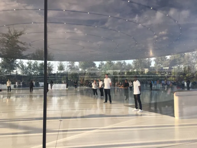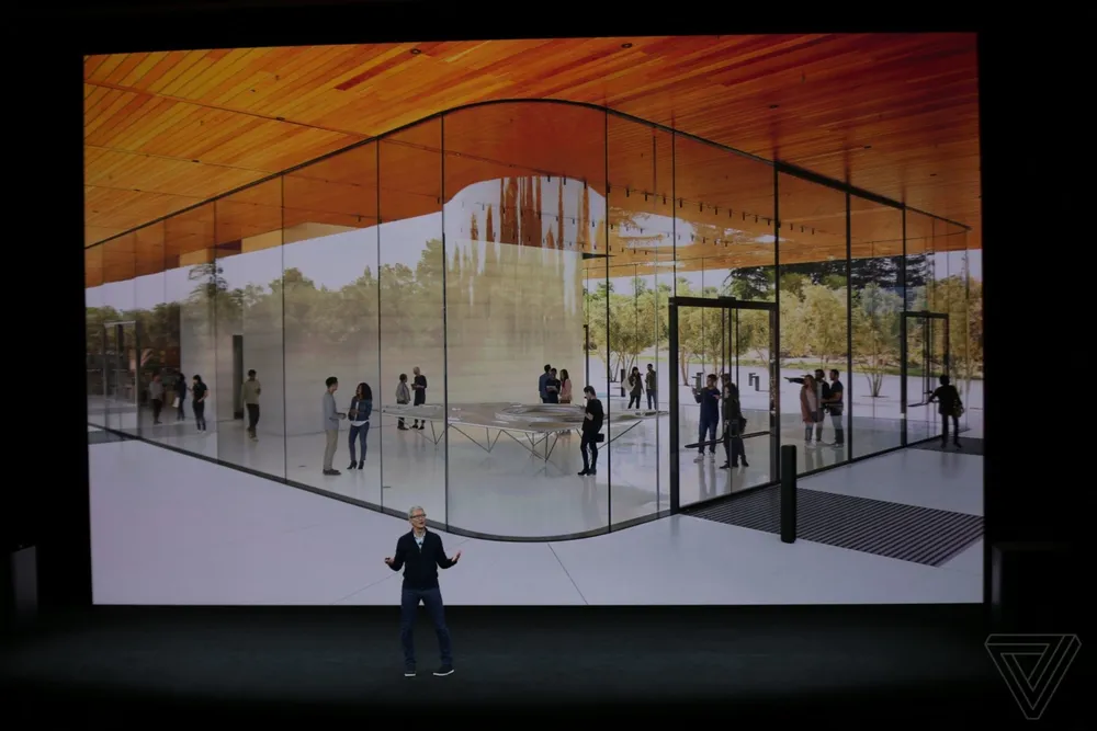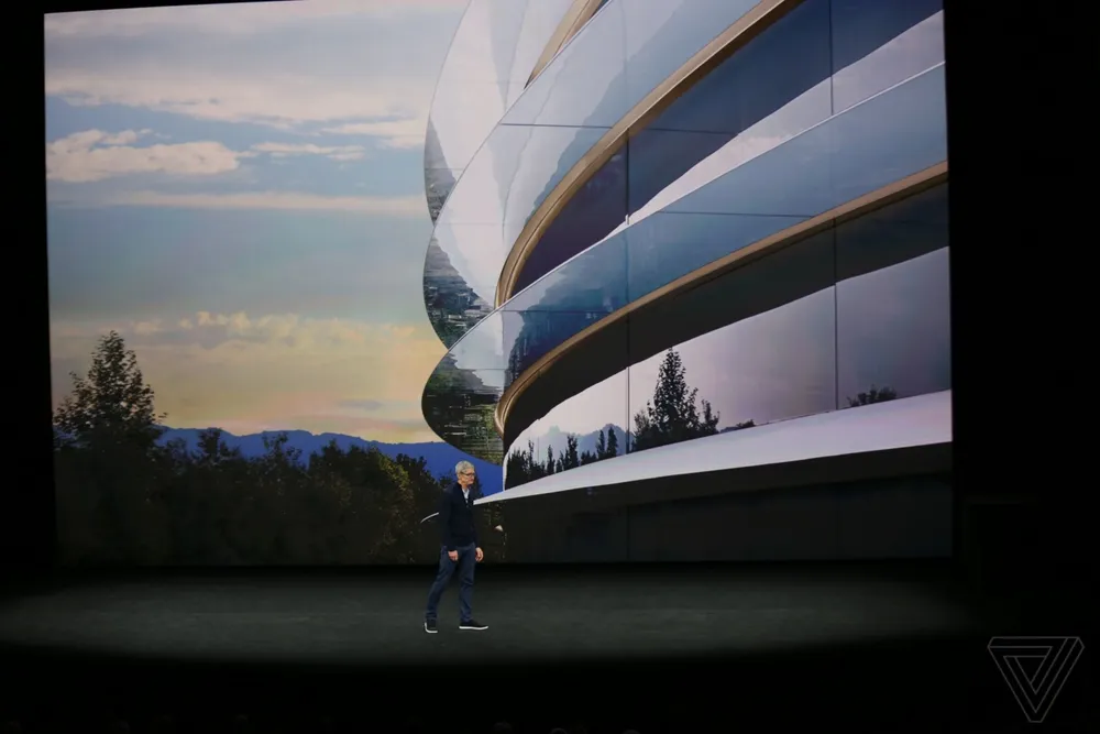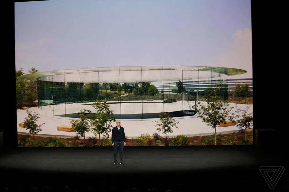 0h08: Tim Cook chia sẻ 1 vài điều về trụ sở mới và kế hoạch chuyển vào của Apple vào cuối năm nay. Nó được xây dựng hoàn toàn bằng nguyên liệu có thể tái tạo, với một không gian xanh 175 mẫu Anh với hơn 9.000 cây.