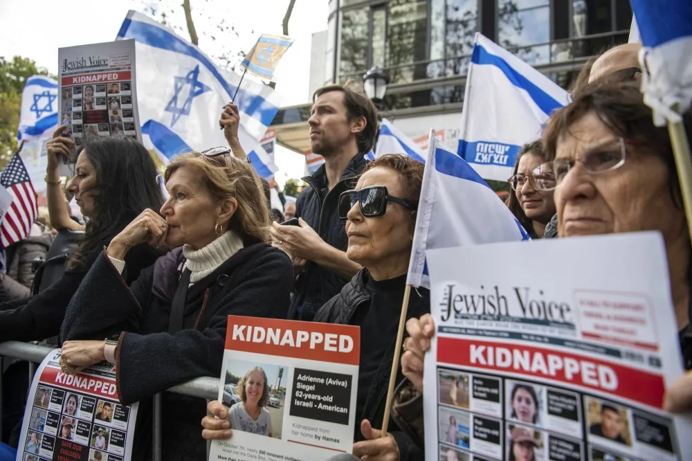 Biểu tình trước trụ sở Liên hợp quốc ở Mỹ yêu cầu giải thoát con tin. Ảnh: New York Times