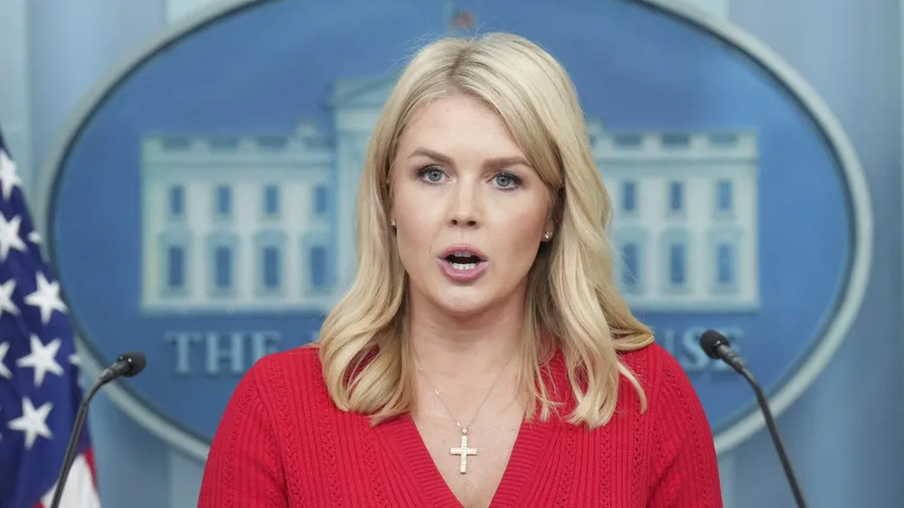 Thư ký báo chí Nhà Trắng Karoline Leavitt phát biểu với các phóng viên tại Nhà Trắng vào ngày 29-5