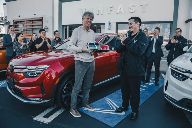 Một khách hàng nhận VF 8 tại Mỹ sáng nay, anh Tedman Vương cho hay năm ngoái khi nghe tin người Việt có thương hiệu xe điện, sản xuất ra những chiếc ôtô có nhiều tính năng công nghệ hiện đại và chuẩn bị xuất khẩu sang thị trường Mỹ, anh đã rất tự hào và muốn trải nghiệm xem tài năng và công nghệ sản xuất xe điện của người Việt ra sao.