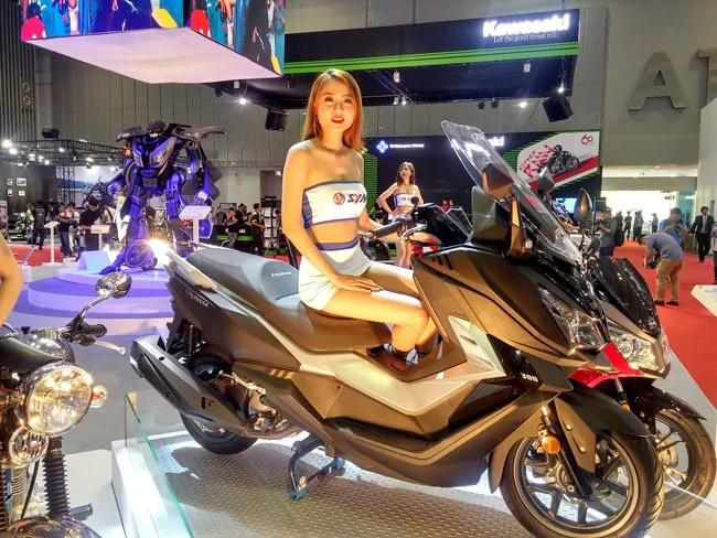 Ở hạng xe thương mại dành cho thị trường Việt Nam, SYM tung ra 2 dòng xe thân thiện là Elite 50 và Elite-EV. Giới chơi xe côn tay sẽ được tận mắt ngắm nhìn 2 mẫu xe thể thao 150cc mới là GSX-S150 và GSX-R150. Cùng với đó, là những mẫu xe côn của Yamaha như MT-03, R15, TFX... cũng sẽ góp mặt tại triểm lãm.