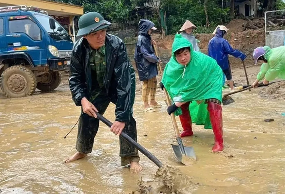 Cán bộ, giáo viên ở xã Tam Thanh (tỉnh Thanh Hóa) cùng dọn dẹp trường lớp chuẩn bị khai giảng năm học mới