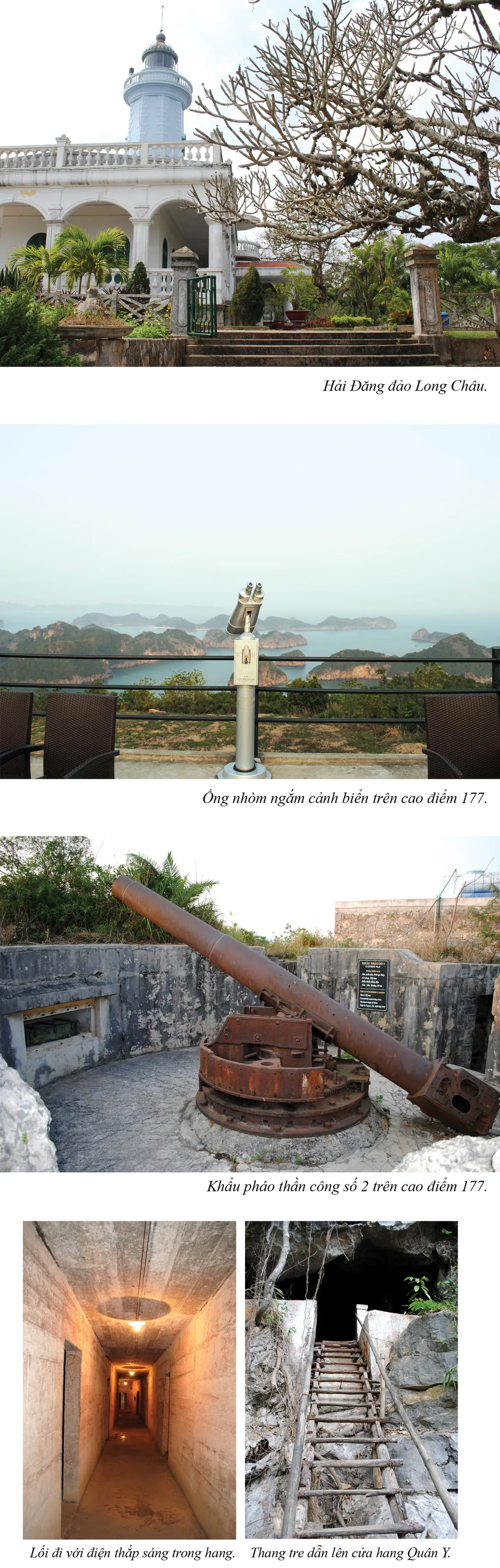 Ngày thứ 2 trong hành trình khám phá Cát Bà, chúng tôi tới Pháo đài thần công. Đây là một di tích lịch sử, đồng thời cũng là điểm ngắm cảnh biển lý tưởng với du khách. Pháo đài thần công nằm trên một quả đồi ngay gần Trung tâm huyện Cát Bà. Sau khi bắt xe máy và đi bộ một đoạn, chúng tôi đến được vị trí đặt những khẩu thần công hay còn gọi là cao điểm 177. Con số 177 chính là độ cao của vị trí này so với mực nước biển.