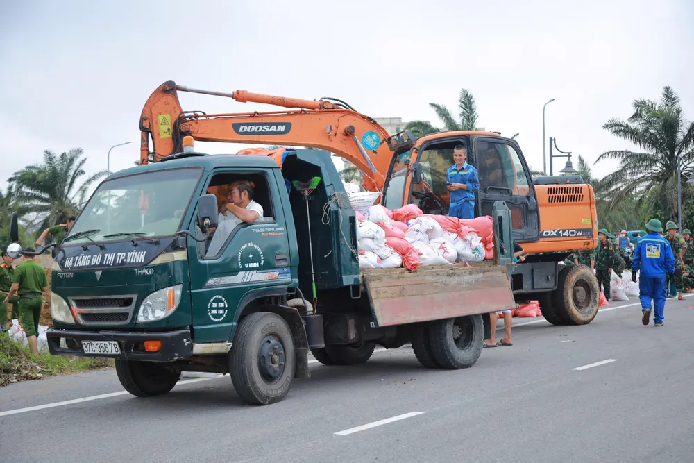 Sáng sớm nay, tại đoạn đê sông Vinh trên đường Vĩnh Giang (phường Trường Vinh, tỉnh Nghệ An) xuất hiện sự cố rò rỉ. Đến khoảng 7 giờ, một đoạn đê và mặt đường đã bị xói lở, nước bắt đầu tràn vào trong khu đô thị Haidico Vinh Tân và nhiều khu dân cư khác ở phường Trường Vinh. Khoảng gần 8 giờ, nước lũ bất ngờ khoét vào thân đê, phá vỡ mặt đường, tạo một dòng chảy rộng hơn 6m.