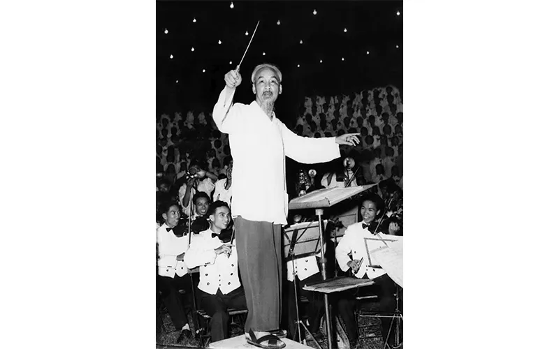Bác bắt nhịp bài ca Kết đoàn. Ảnh: LÂM HỒNG LONG