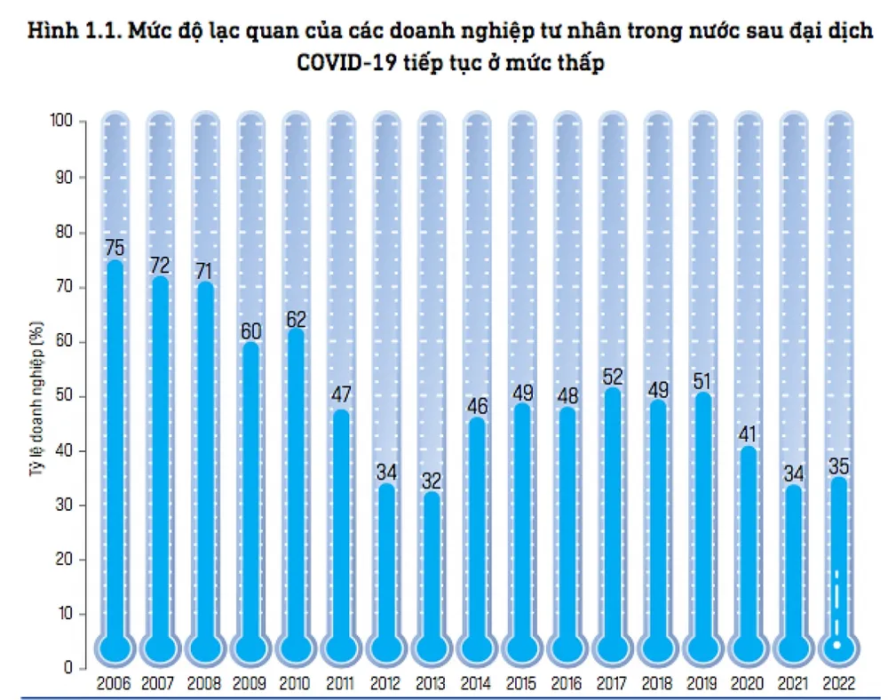 Tình hình kém lạc quan này cũng được phản ánh qua đánh giá niềm tin kinh doanh của các doanh nghiệp tham gia Khảo sát Chỉ số Năng lực cạnh tranh cấp tỉnh (PCI) 2022. Kết quả cho thấy, chỉ 35% doanh nghiệp tư nhân và 33% doanh nghiệp có vốn đầu tư trực tiếp nước ngoài có dự định mở rộng sản xuất, kinh doanh trong vòng 2 năm tới.