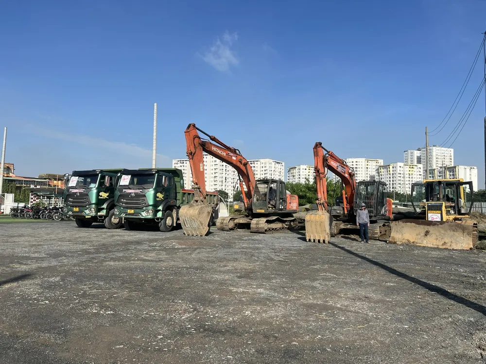 Đơn vị thi công triển khai ngay sau lễ khởi công. Ảnh: QUỐC HÙNG