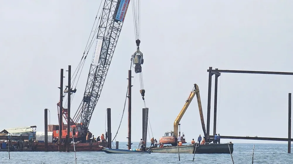 Theo ghi nhận, Công ty TNHH Tư vấn Thiết kế Xây dựng Thuận Thành KG đang thi công dựng sàn đạo trong hành lang an toàn của tuyến cáp ngầm 110kV Hà Tiên - Phú Quốc thuộc bờ biển Hà Tiên. Việc ép cọc thép sàn đạo là nguyên nhân gây nên sự cố thuộc đoạn cáp ngầm 110kV cấp điện cho đặc khu Phú Quốc.