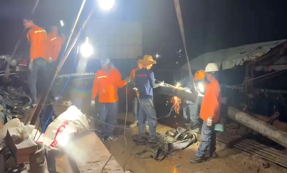 Công nhân nỗ lực thi công cả ngày lẫn đêm khắc phục sự cố