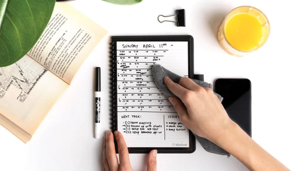 Tìm ra những ý tưởng hay nhất của bạn, sau đó đồng bộ hóa với đám mây cùng lúc ghi chép trên giấy. Chỉ cần sử dụng Mini Wipebook Pro+ sổ tay xóa thông minh. Sản phẩm đi kèm với sự kết hợp của biểu đồ có thể xóa được và các trang được kẻ. Mini Wipebook Pro+ có một cây bút chống nhòe sáng tạo để giúp người dùng thực hiện quy trình dễ dàng hơn. Ngoài ra, vỏ giả da màu đen mang lại cho nó một thiết kế và kiểu dáng đẹp. Wipebook bao gồm khăn xóa khô siêu bóng đã được cấp bằng sáng chế.