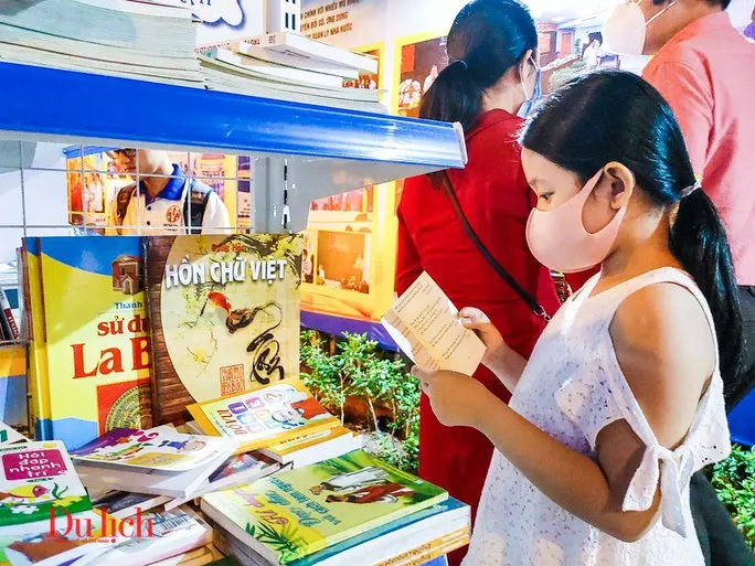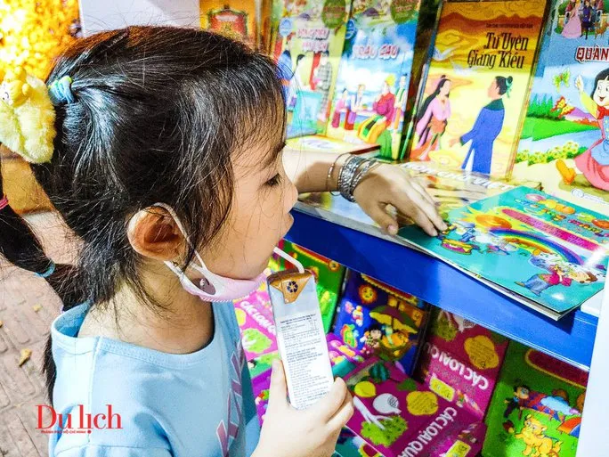 Các em thiếu nhi thích thú với không gian sách thiên nhiên tại khu vực Hồ Con Rùa
