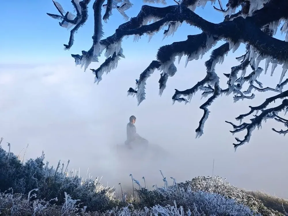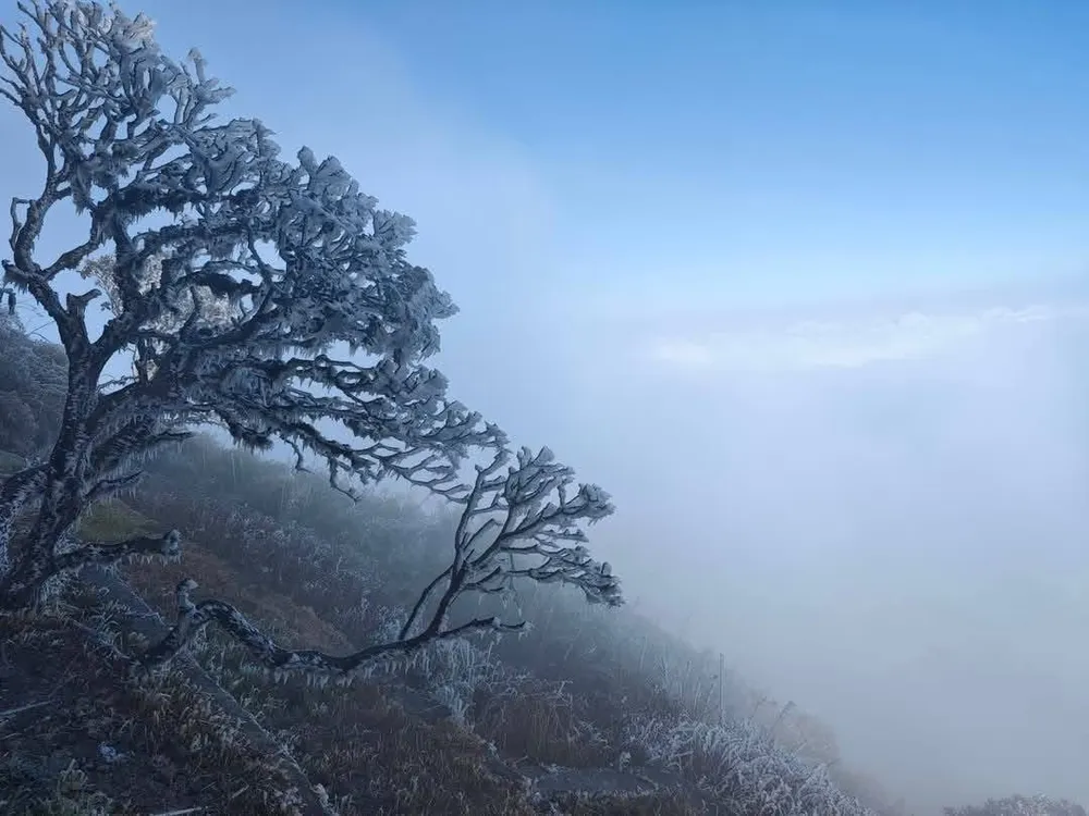 Băng giá trên đỉnh Fansipan. Ảnh: Truyền hình Sa Pa