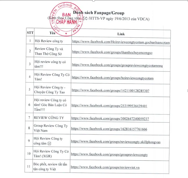 Các trang mạng xã hội "đánh giá" doanh nghiệp VDCA kiến nghị xử lý.