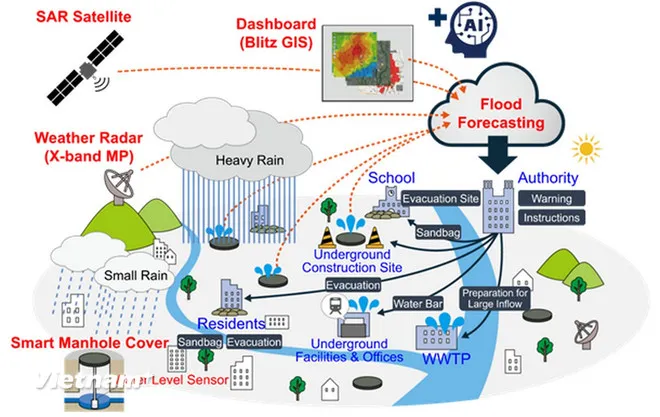 Tuy nhiên, những hạng mục này đòi hỏi nguồn lực tài chính, nhân lực và thời gian kéo dài. Vì vậy, Nhật Bản cũng đồng thời chú trọng triển khai các giải pháp phi công trình - bao gồm hoạt động phòng, chống ngập lụt tức thời bằng bao cát, tấm chắn nước, cảnh báo và khuyến nghị sơ tán dựa trên dự báo thời tiết... nhằm giảm thiểu thiệt hại về người và tài sản.