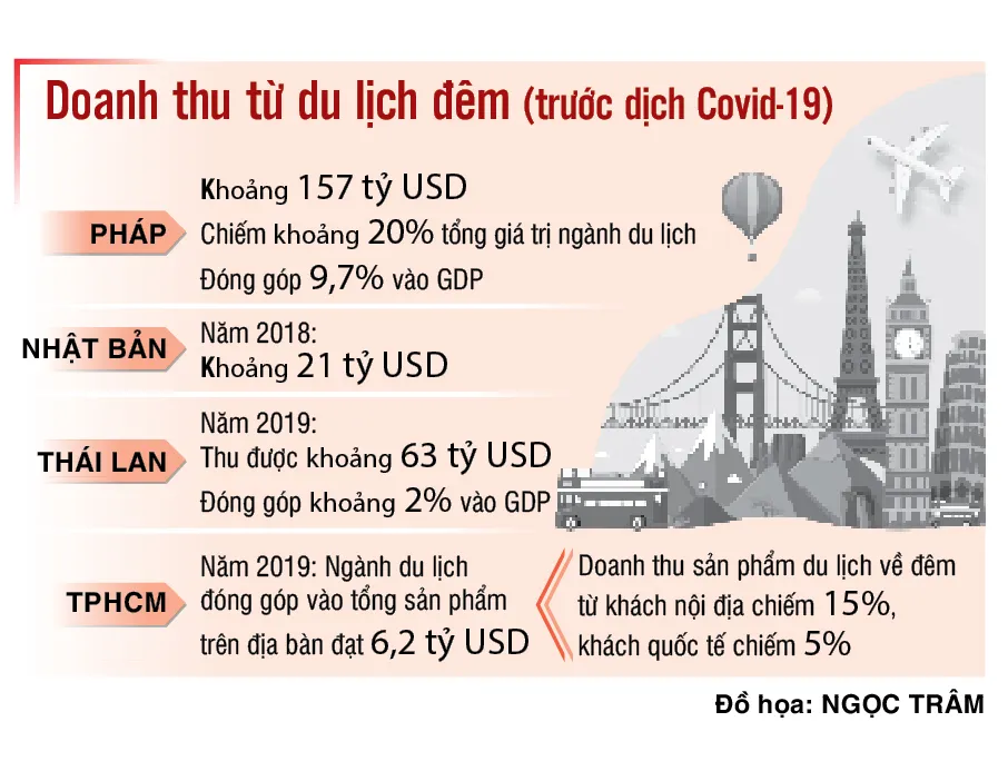 Để sản phẩm du lịch đêm “sống được”, phát triển ổn định và bền vững, chuyên gia thiết kế sản phẩm du lịch Phan Yến Ly cho rằng, cần tạo nét riêng với nhiều hoạt động vui chơi, mua sắm, trải nghiệm và các loại hình văn hóa nghệ thuật đặc sắc. Tại TPHCM, Bến Bạch Đằng (quận 1) có thể đầu tư loại hình du lịch “Trên bến dưới thuyền”, còn khu vực Chợ Lớn, điểm nhấn là chợ Bình Tây (quận 6) cần có loại hình mua sắm, ẩm thực gắn với cuộc sống của người dân bản địa.