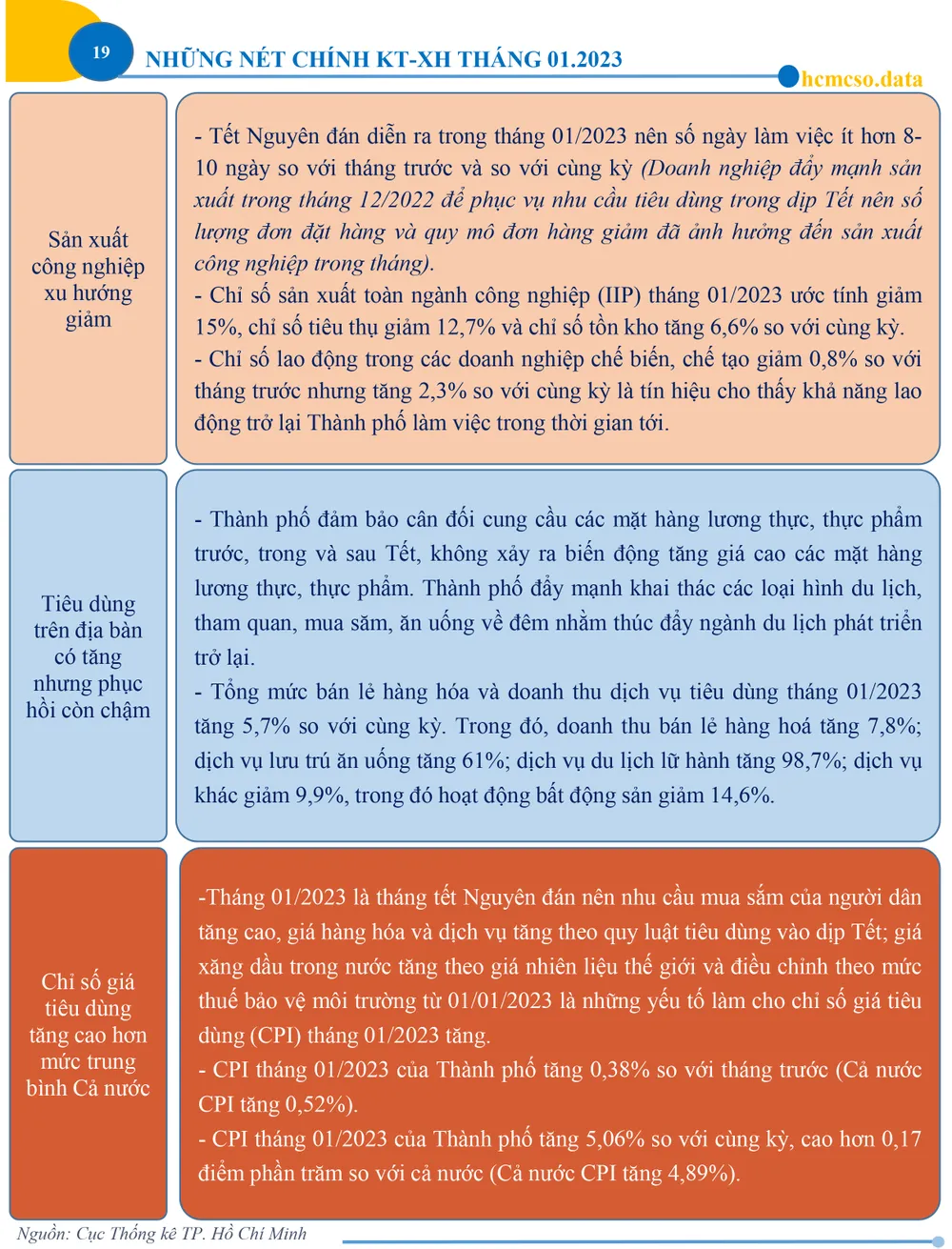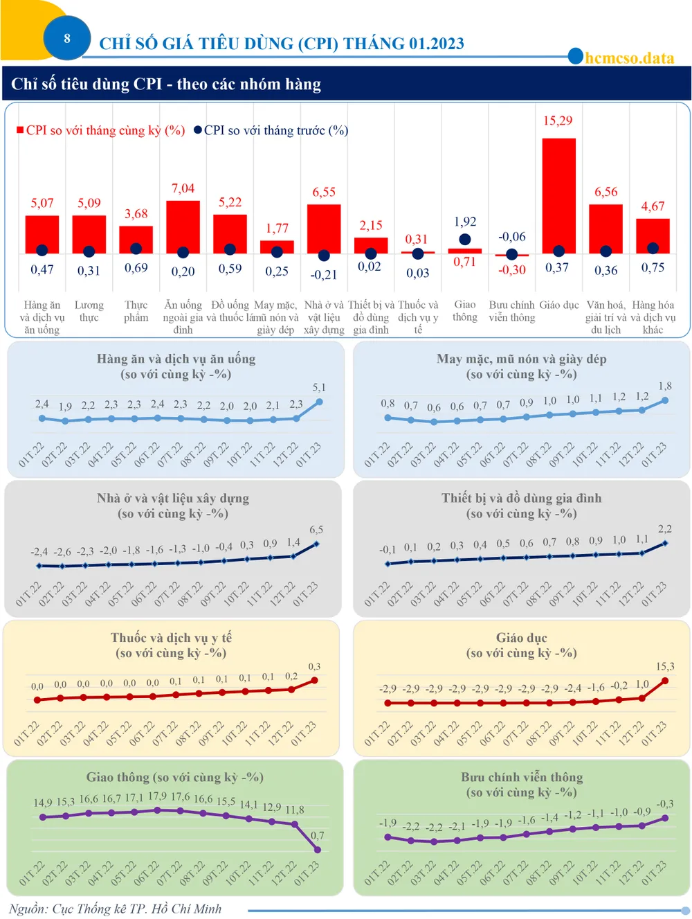 (ĐTTCO) - Tháng 01/2023 là tháng tết Nguyên đán nên nhu cầu mua sắm của người dân tăng cao, giá hàng hóa và dịch vụ tăng theo quy luật tiêu dùng vào dịp Tết; giá xăng dầu trong nước tăng theo giá nhiên liệu thế giới và điều chỉnh theo mức thuế bảo vệ môi trường từ 01/01/2023 là những yếu tố làm cho chỉ số giá tiêu dùng (CPI) tháng 01/2023 tăng.