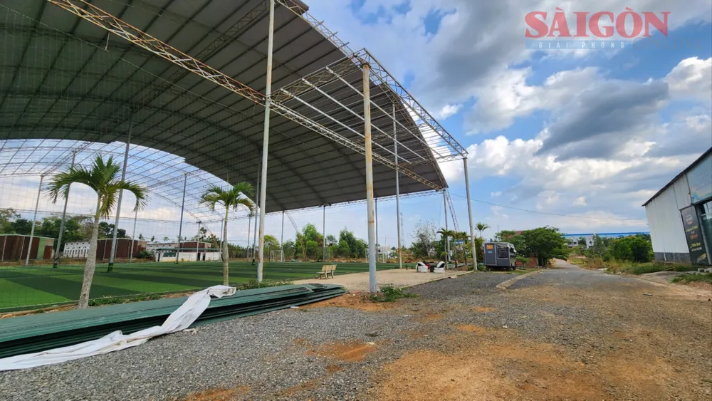 Khu vực xây dựng sân bóng mini nằm trong cụm các công trình không phép tại Khu công nghiệp Lộc Sơn, TP Bảo Lộc. Ảnh: ĐOÀN KIÊN