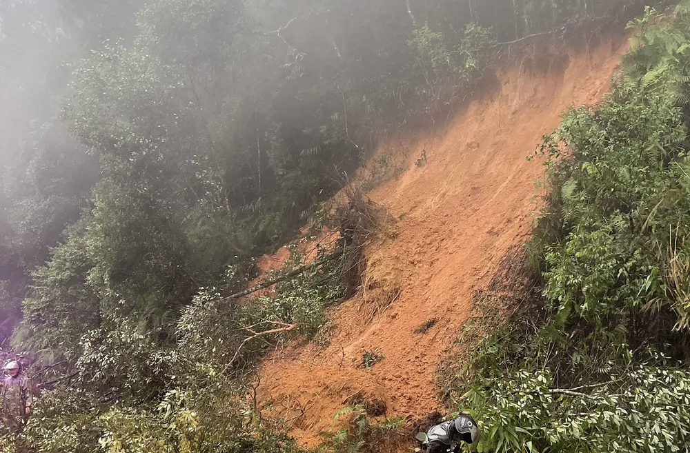 Điểm sạt lở trên đèo Phú Mỹ, tỉnh Lâm Đồng