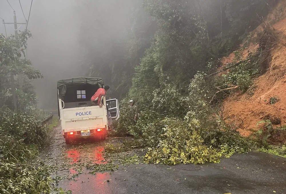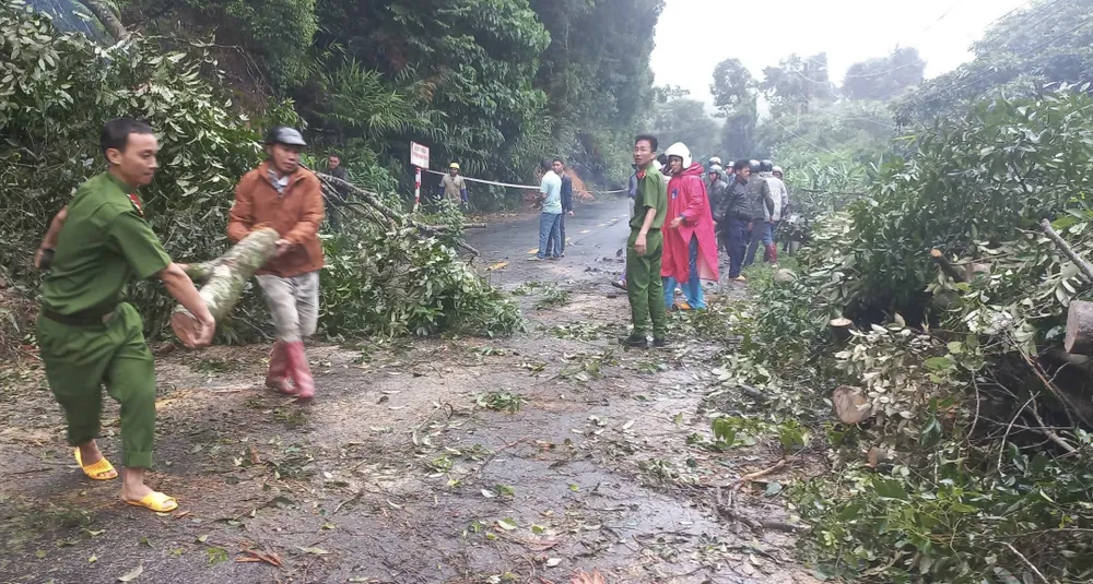 Ngay sau khi nhận được tin, Công an xã Đam Rông 1 phối hợp cùng lực lượng tại chỗ tổ chức điều phối giao thông, thu dọn cây ngã đổ, đảm bảo giao thông thông suốt.