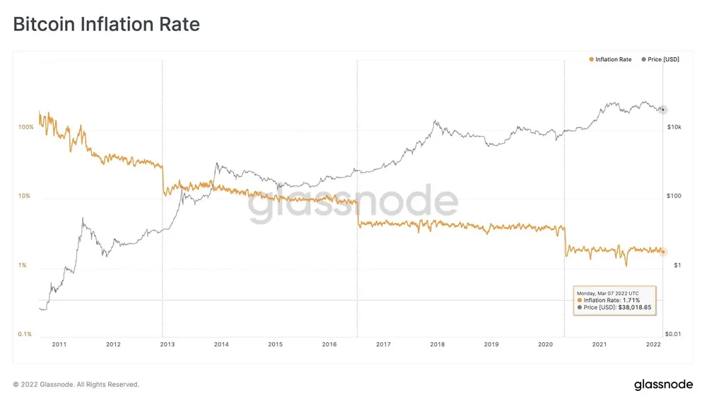 Khi Bitcoin tiếp tục giảm một nửa phần thưởng khai thác của mình, với sự kiện halving tiếp theo diễn ra vào tháng 5-2024, nghĩa là tỷ lệ lạm phát của Bitcoin sẽ còn giảm nhiều hơn nữa.