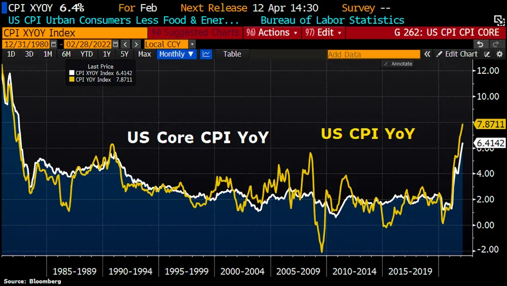 Trong khi đó, tỷ lệ lạm phát của USD tiếp tục tăng vọt, đạt 7,9% trong tháng 2. Đây là tỷ lệ lạm phát cao nhất trong 40 năm hoặc kể từ năm 1981, “ngay cả trước khi giá dầu tăng vọt”, theo tweet của Holger Zschaepitz, phóng viên tài chính hàng đầu Welt.
