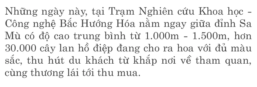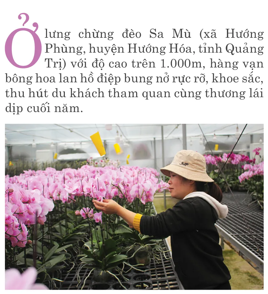 (ĐTTCO) - Ở lưng chừng đèo Sa Mù (xã Hướng Phùng, huyện Hướng Hóa, tỉnh Quảng Trị) với độ cao trên 1.000m, hàng vạn bông hoa lan hồ điệp bung nở rực rỡ, khoe sắc, thu hút du khách tham quan cùng thương lái dịp cuối năm.
