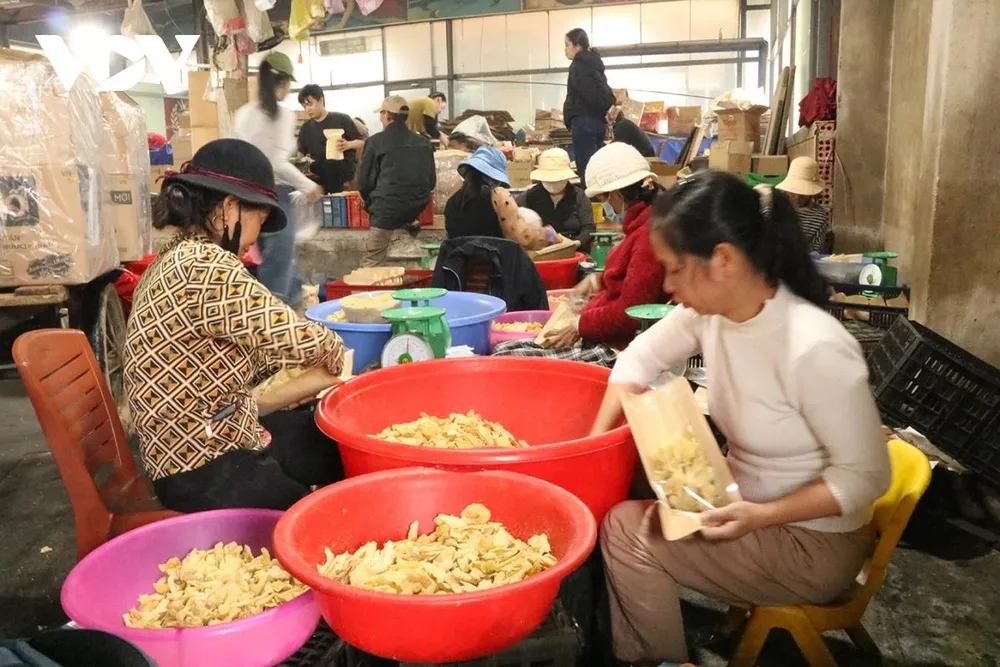 Bà Võ Thị Tâm, 54 tuổi, chủ cơ sở mứt gừng Tuấn Tâm cho biết, bà theo nghề đã hơn 30 năm. Cơ sở của gia đình bà Tâm lớn nhất trong làng với hàng chục lò nấu, giải quyết việc làm cho hơn 50 lao động địa phương. Vụ Tết, mỗi ngày, cơ sở Tuấn Tâm sản xuất khoảng 2 tấn mứt gừng, đưa đi tiêu thụ khắp nơi.