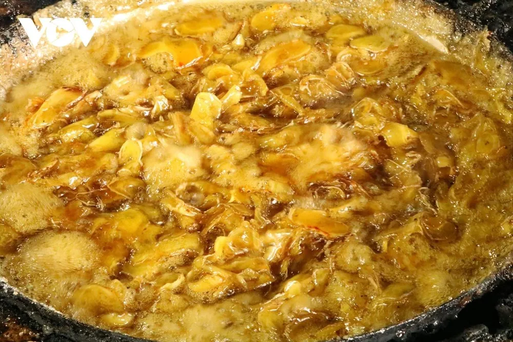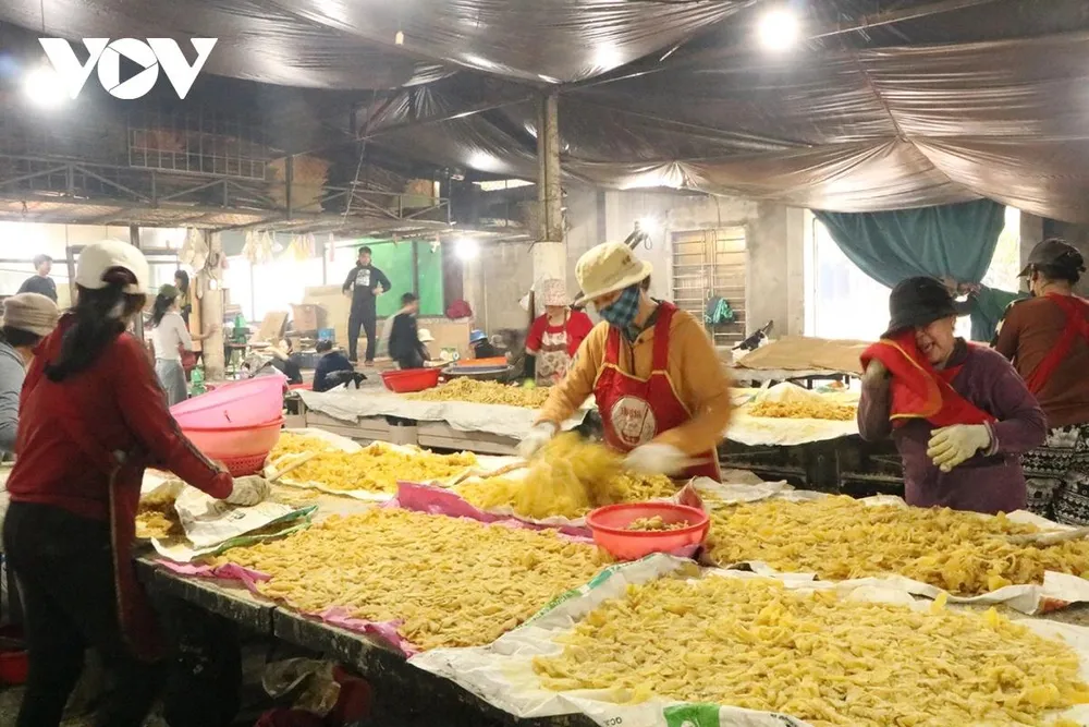 “Phải làm nhanh tay, trộn nhanh thì mứt mới khô. Khi đổ ra mứt ướt nên phải xáo nhanh mới khô, không kịp thì mứt sẽ bị vón cục lại. Chủ lò tạo công ăn việc làm cho chị em dịp Tết. Người thì bỏ bì, người bào, người luộc gừng… Bà con ai cũng có công ăn việc làm” - bà Hạnh chia sẻ.