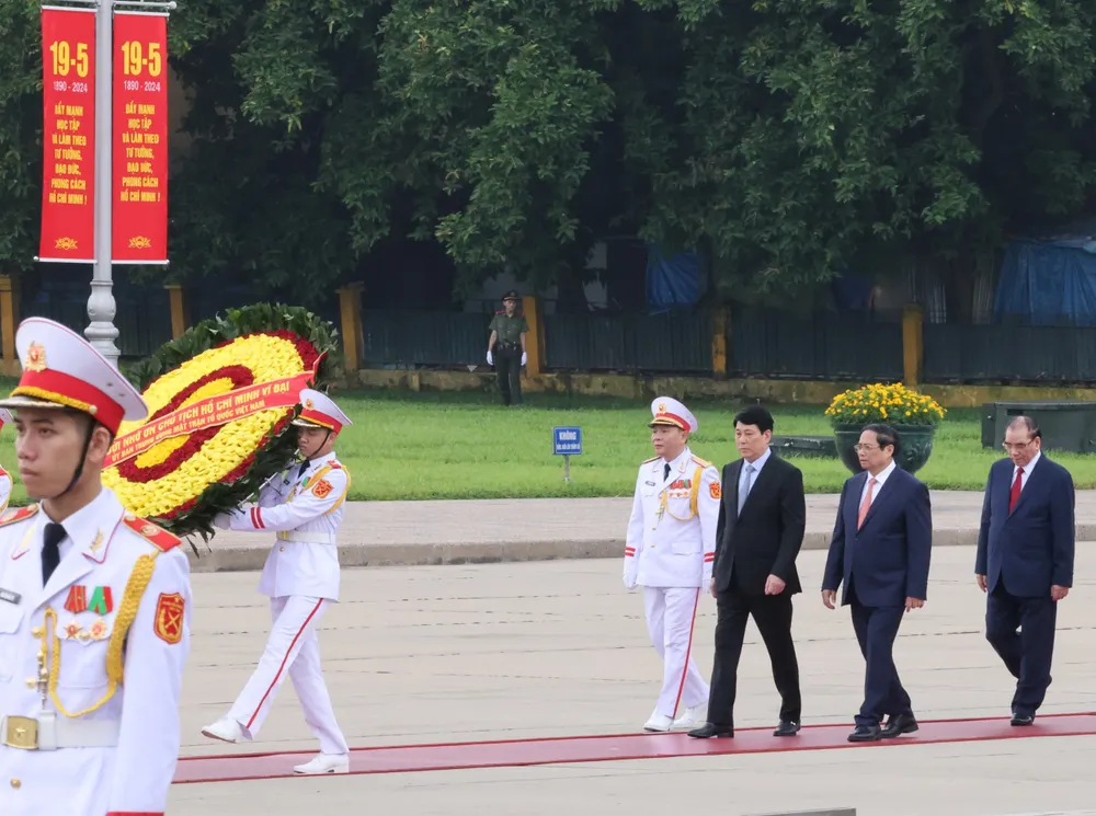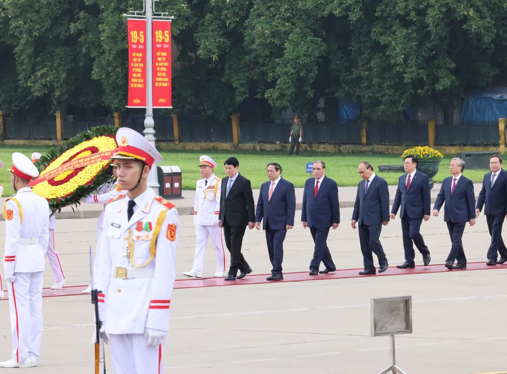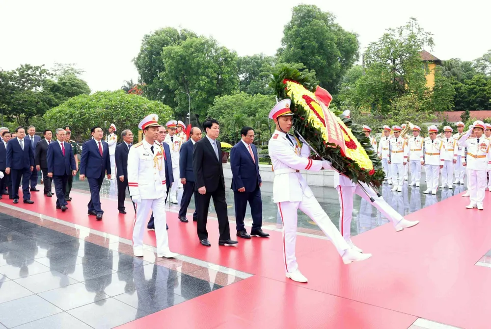 Lãnh đạo Đảng, Nhà nước vào Lăng viếng Chủ tịch Hồ Chí Minh. Ảnh: QUANG PHÚC