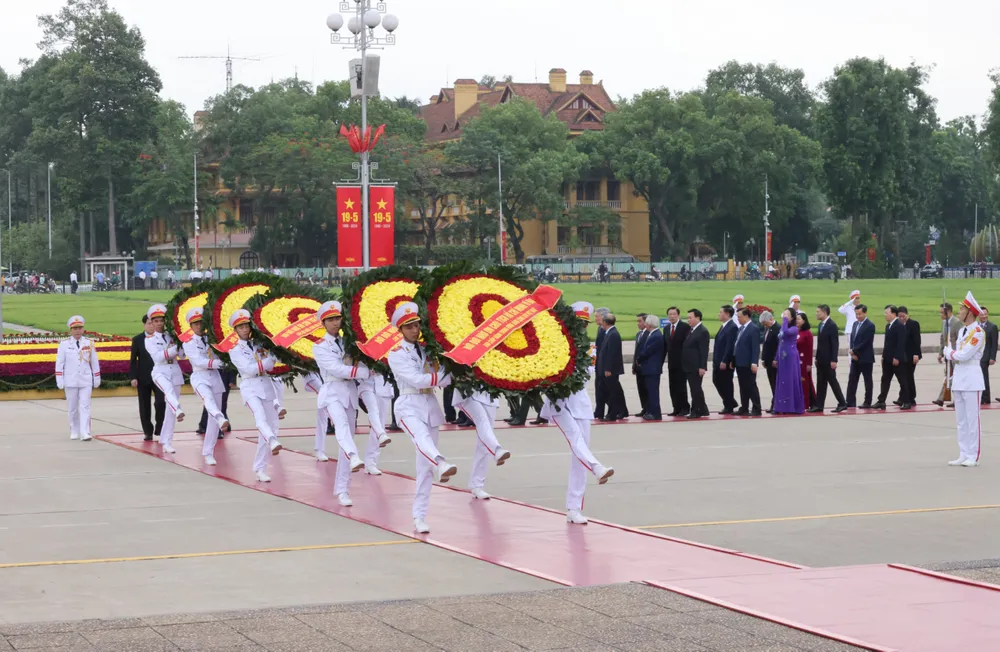 Sáng cùng ngày, các Đoàn đại biểu Quân ủy Trung ương - Bộ Quốc phòng; Đảng ủy Công an Trung ương - Bộ Công an; Thành ủy, HĐND, UBND TP Hà Nội... đã đến đặt vòng hoa, vào Lăng viếng Chủ tịch Hồ Chí Minh và tưởng niệm các Anh hùng liệt sĩ.