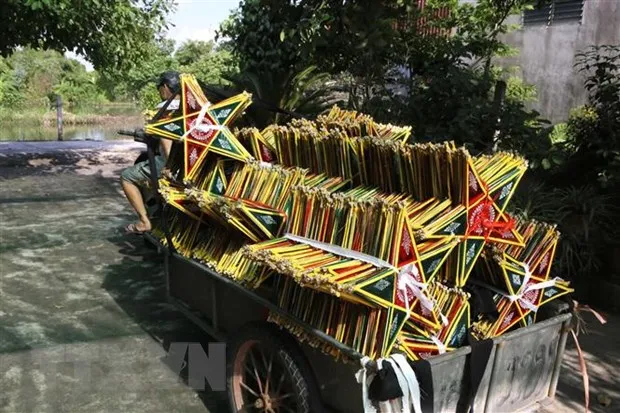 Vận chuyển đèn Trung Thu đi tiêu thụ. (Ảnh: Công Luật/TTXVN)