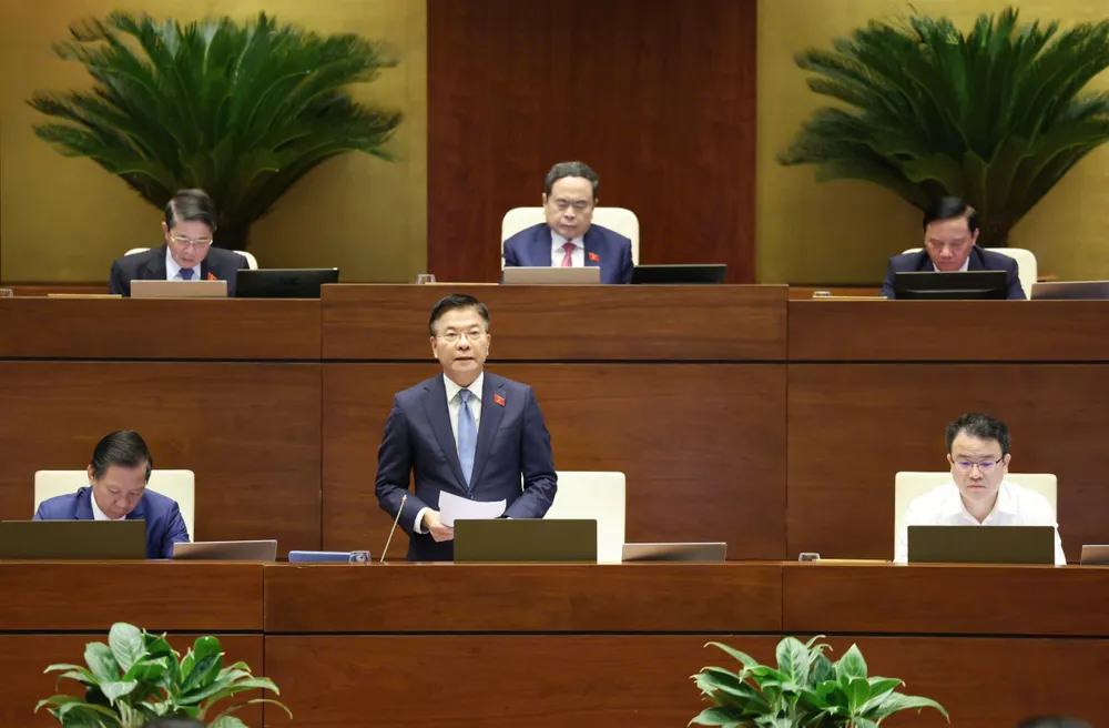 Phó Thủ tướng Lê Thành Long phát biểu giải trình, làm rõ một số vấn đề đại biểu Quốc hội nêu, sáng 30-10. Ảnh QUANG PHÚC
