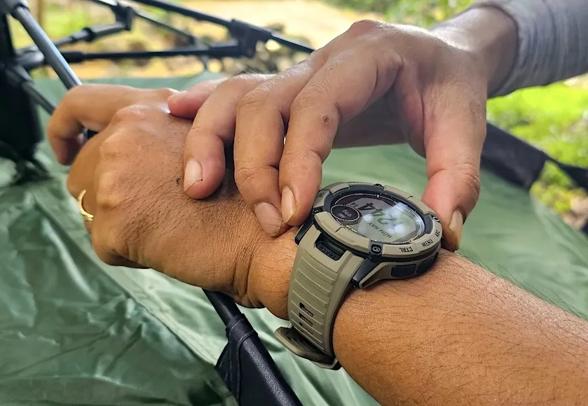 Thời gian ở núi Dinh, chúng tôi cũng đã trải nghiệm tính năng điều hướng ngoài trời với cảm biến tích hợp cho la bàn 3 trục và khí áp kế hay lộ trình khứ hồi TracBack®. Việc xác định điểm muốn đi và tuyến đường quay lại điểm xuất phát trở nên thật dễ dàng.