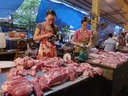Thịt lợn vai từ 90.000 đồng/cân lên 100.000 đồng/cân, xương ống: 40.000 đồng/cân lên 45.000 đồng/cân. Bí xanh từ 8.000 đồng/cân lên 10.000 đồng/cân.